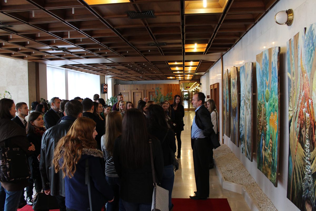 Po obede na Prezídiu Policajného zboru naše ďalšie kroky viedli do Národnej rady Slovenskej republiky. Prehliadka priestorov parlamentu bola sprevádzaná odborným výkladom. Potom sme postupne prešli na balkón rokovacej sály, aby sme sa zúčastnili aspoň sčasti na rokovaní Národnej rady SR. Predsedal novozvolený predseda NR SR Peter Pellegrini. Keďže zasadacie priestory neboli zaplnené, asi s rovnakou otázkou v mysli sme sa presunuli do priestorov, kde zasadajú výbory. Tu nás očakával poslanec Národnej rady SR a zároveň náš pán dekan Právnickej fakulty UMB Mojmír Mamojka. Umožnil nám „zasadnúť“ v priestoroch Výboru NR SR pre vzdelávanie, vedu mládež a šport, ktorému predsedá. Pán dekan spolu s pánom poslancom Dušanom Jariabkom nám priblížili, ako Národná rada Slovenskej republiky funguje, čo spadá do kompetencií navštíveného výboru a dostali sme odpoveď aj na otázku - prečo je rokovacia sála parlamentu takmer prázdna. Odpoveďou na ňu bolo oboznámenie prítomných s pracovným dňom poslanca, ktorého práca nespočíva len v účasti na rokovaniach, ale najmä na príprave legislatívnych návrhov a štúdiu rôznych materiálov. Procedúru legislatívneho procesu, ktorú sme doteraz poznali ako teóriu, nám pán dekan priblížil premietnutú do praxe. My, študenti zvlášť oceňujeme, že všetky výklady, prednášky, diskusie boli poňaté s istým nadhľadom, v uvoľnenej atmosfére bez toho, aby bola ovplyvnená odbornosť a stratila sa podstata prezentovaných tém.
